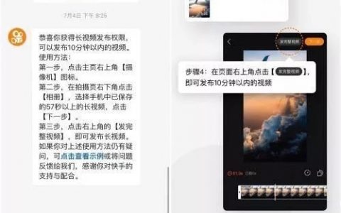 7月19日,短視頻巨頭之一快手APP開始小範圍內測長視頻功能,時長限制在57秒以上,10分鐘以內。目前該功能僅部分使用者可以體驗,後續可能會將許可權放開。