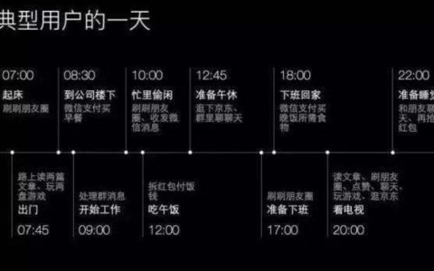 產品要能充分圍繞消費者日常行為軌跡,做好適時的場景化的購買提醒,這是社會化媒體時代產品管道選擇的重要原則。 其實在互聯網行業,對於這條原則的理解及使用更為廣泛。下圖是微信針對用戶的行為習慣的分析,在這個基礎之上,不斷優化改善自己的產品,搶奪使用者有限的時間及注意力,最終帶來高轉化率和品牌的粘性。