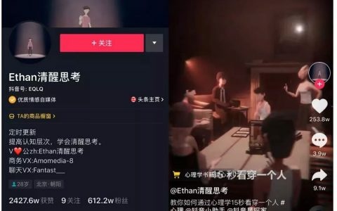 如抖音帳號“Ethan清醒思考”,主打“提高認知層次,學會清醒思考”,視頻內容從心理學出發,以“動畫+配樂+講解”的形式向用戶傳遞各種心理學知識,形式喜聞樂見、通俗易懂,內容神奇而有趣,因此也牢牢抓住了用戶的注意力。